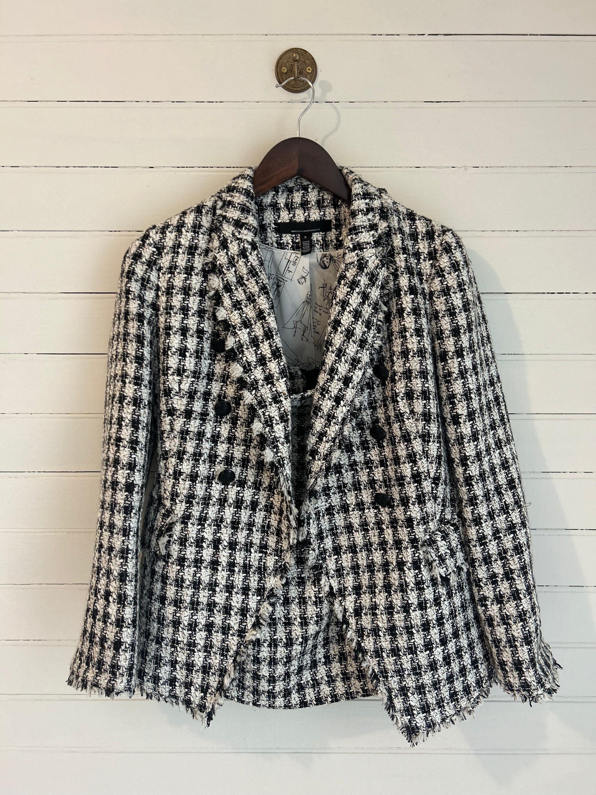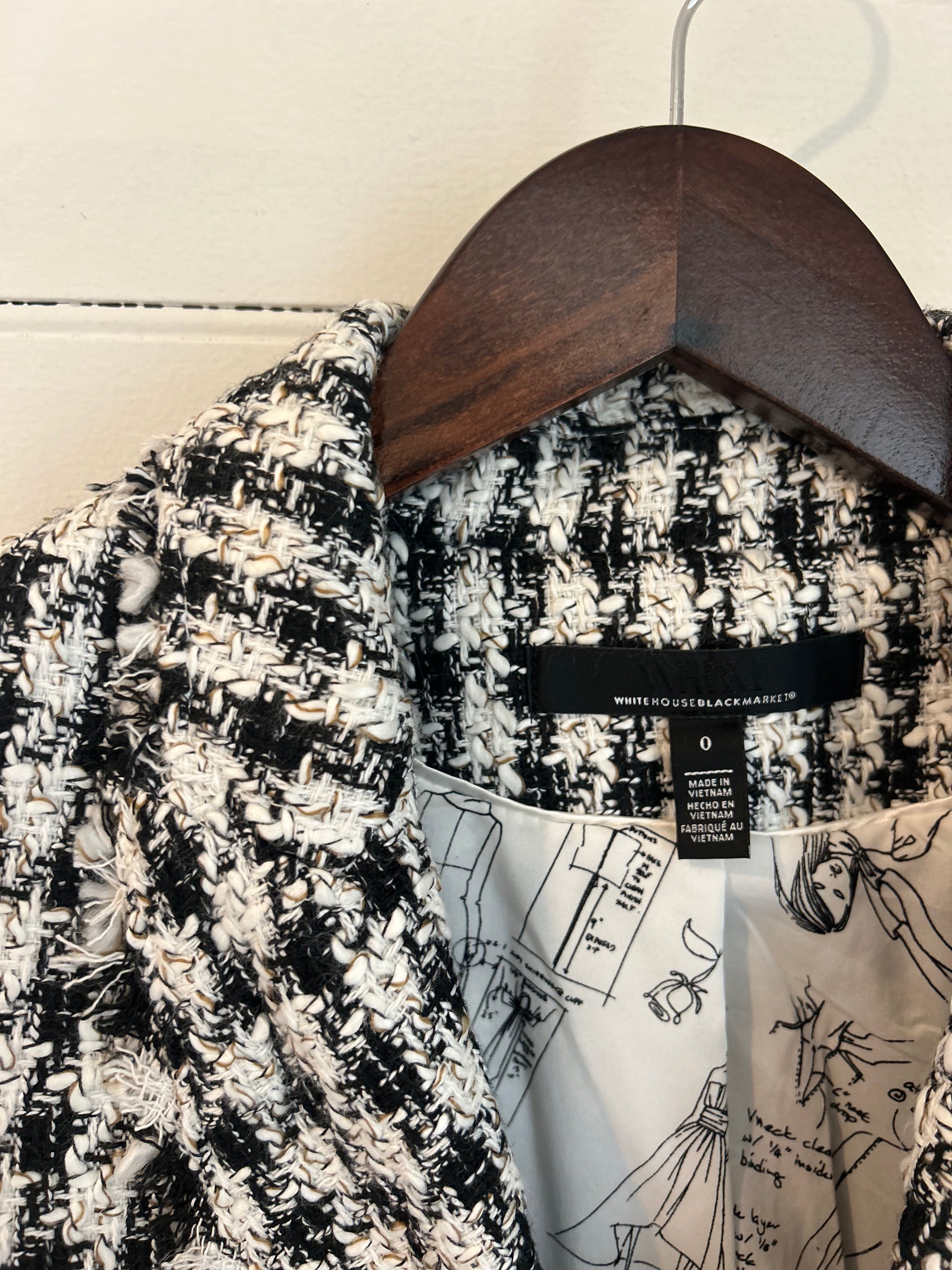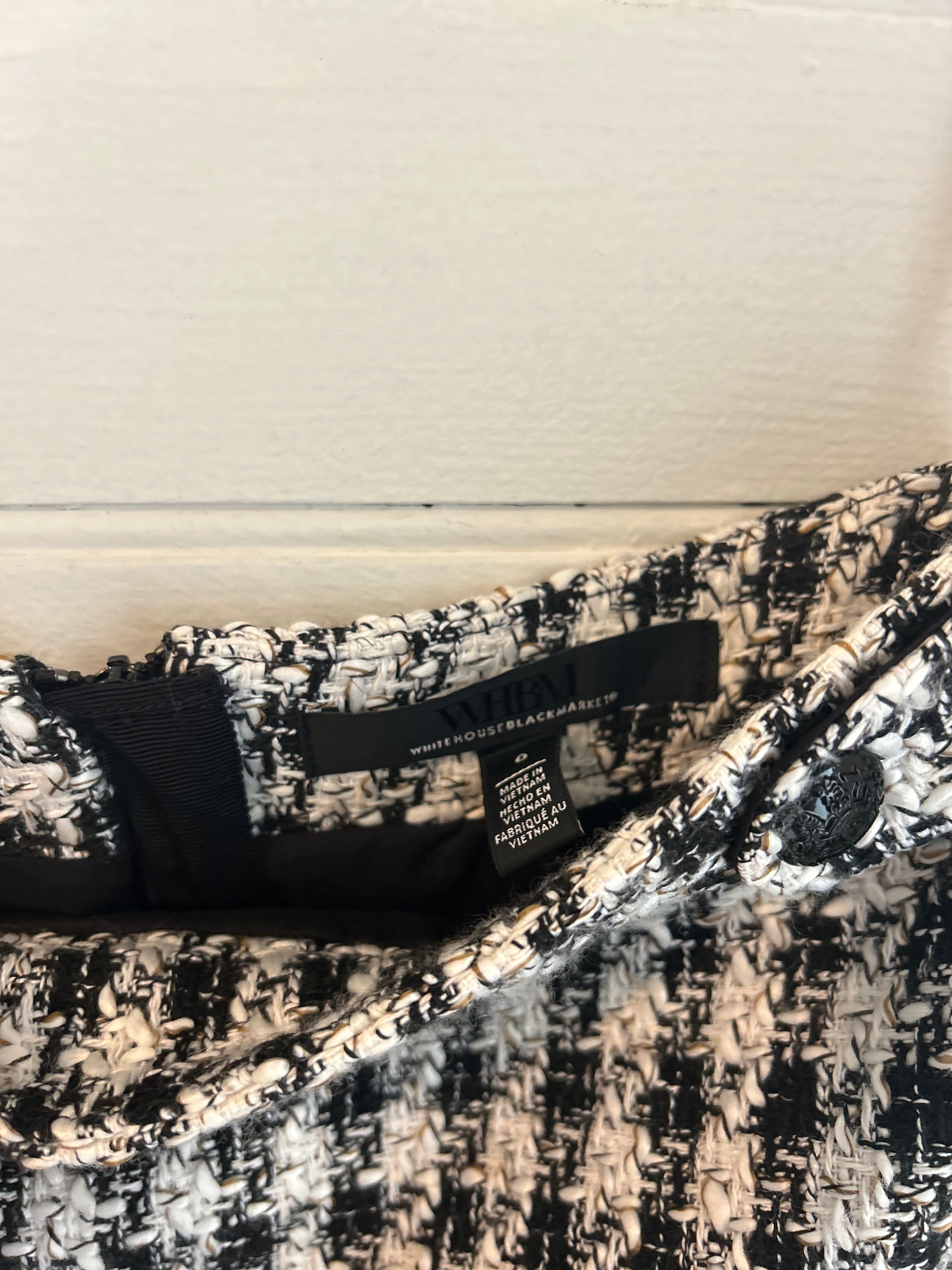 White House Black Market matching blazer and skirt. White and black tweed houndstooth pattern. Perfect for all your holiday parties!