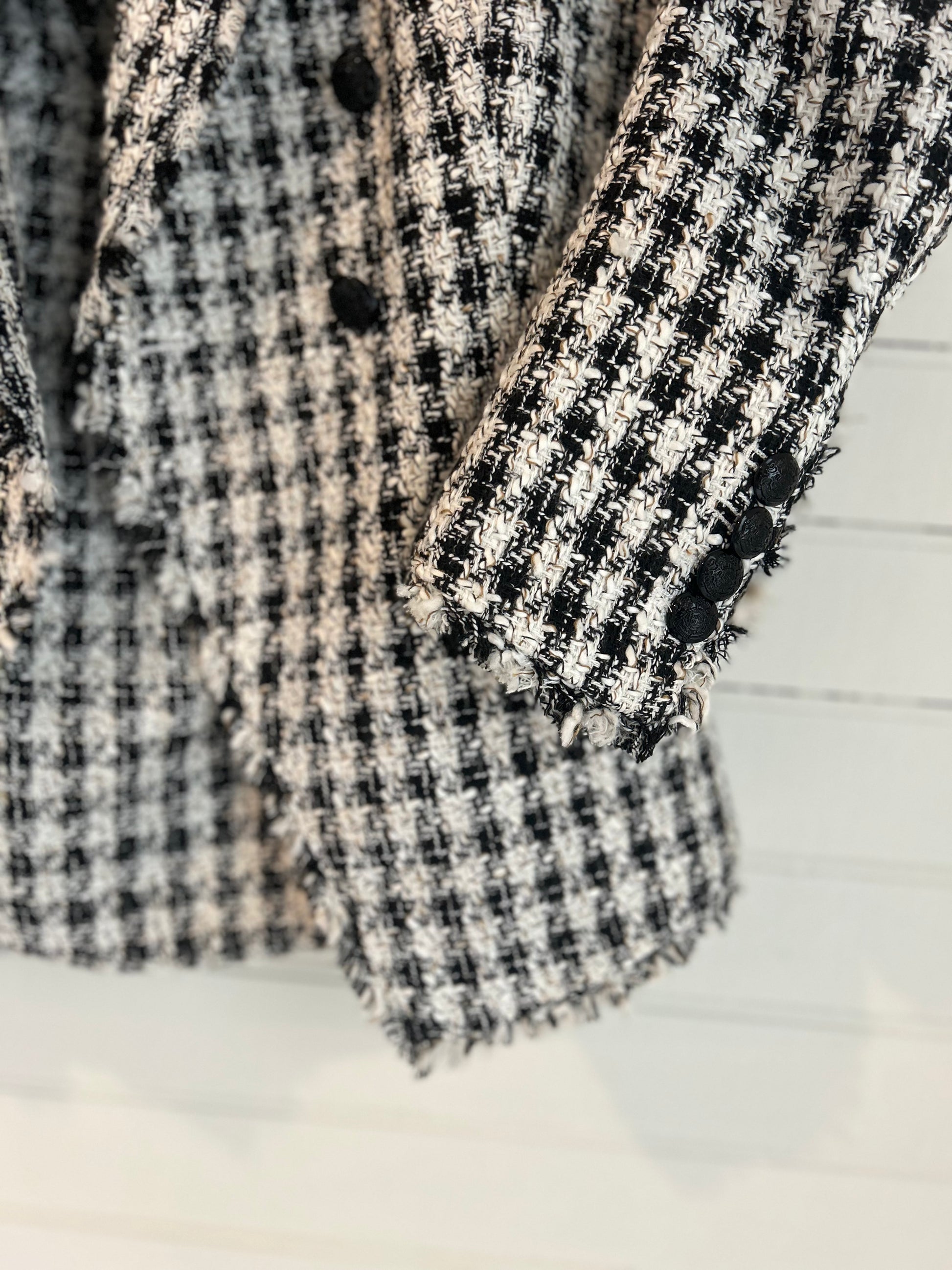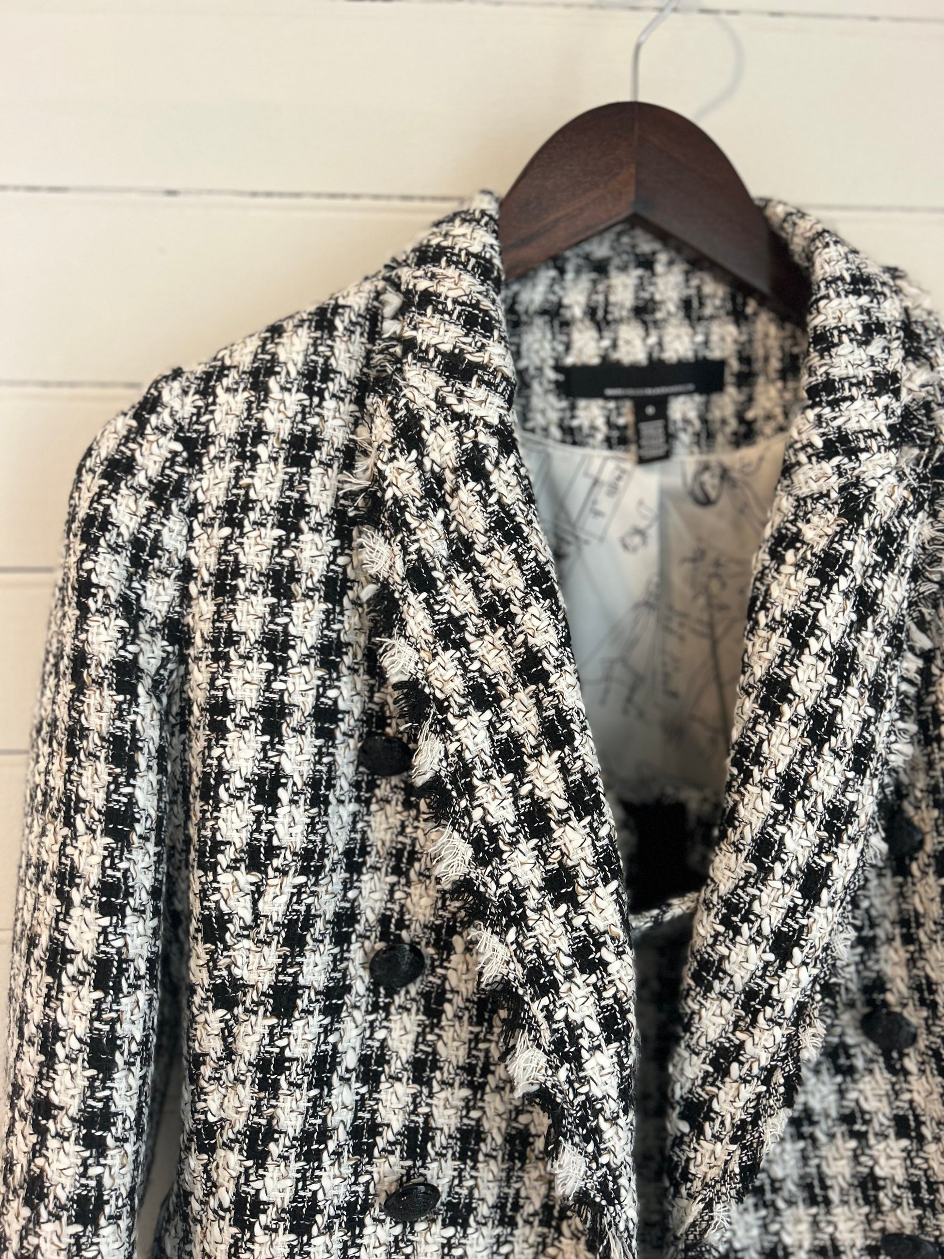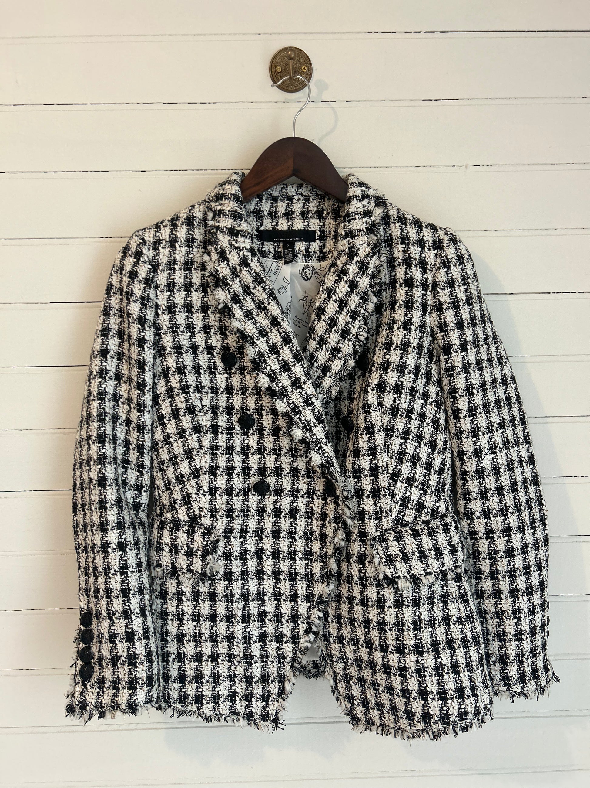White House Black Market matching blazer and skirt. White and black tweed houndstooth pattern. Perfect for all your holiday parties!