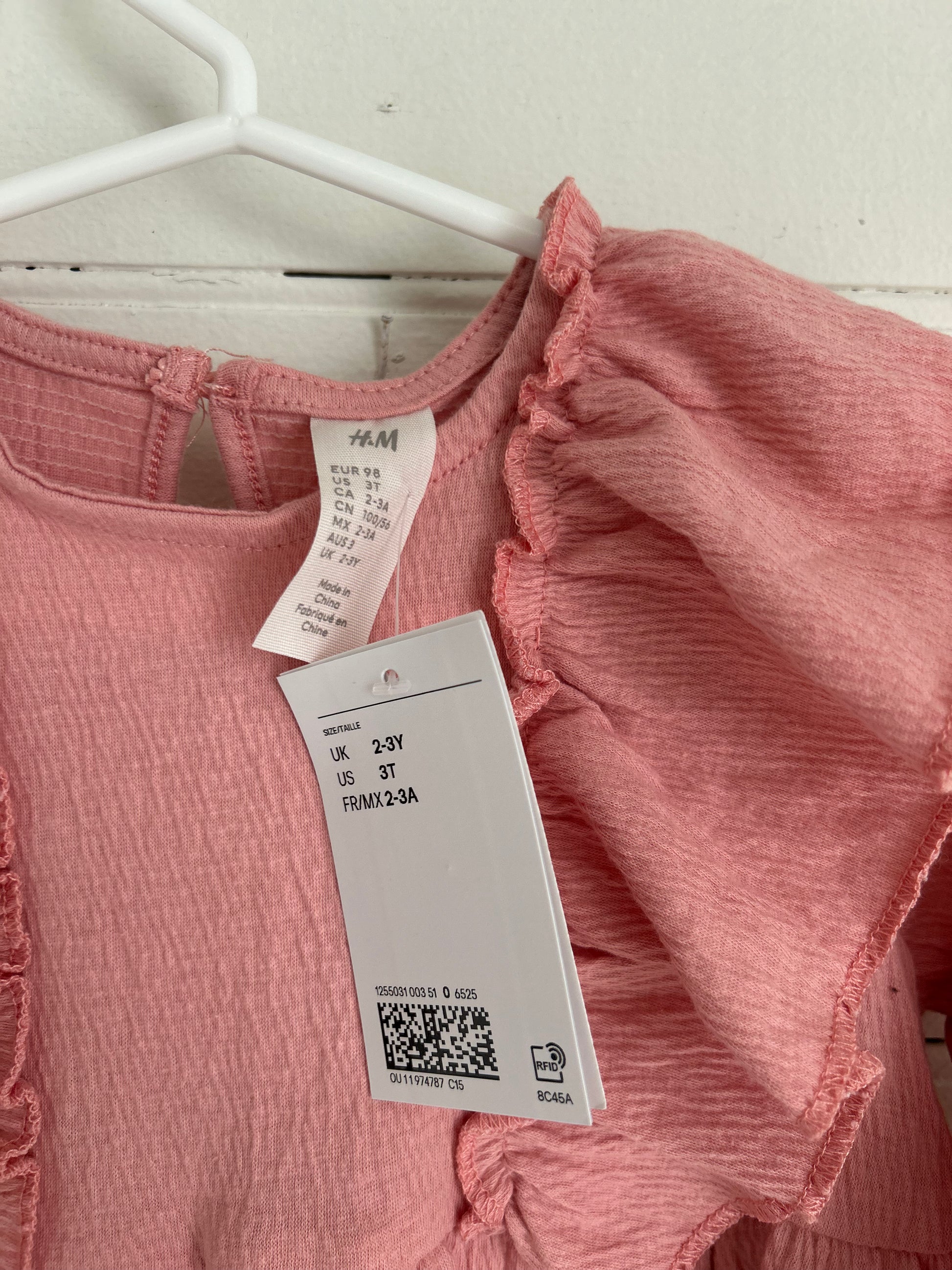 H&M longsleeve pink dress with frills at the top of sleeves. New with tags!