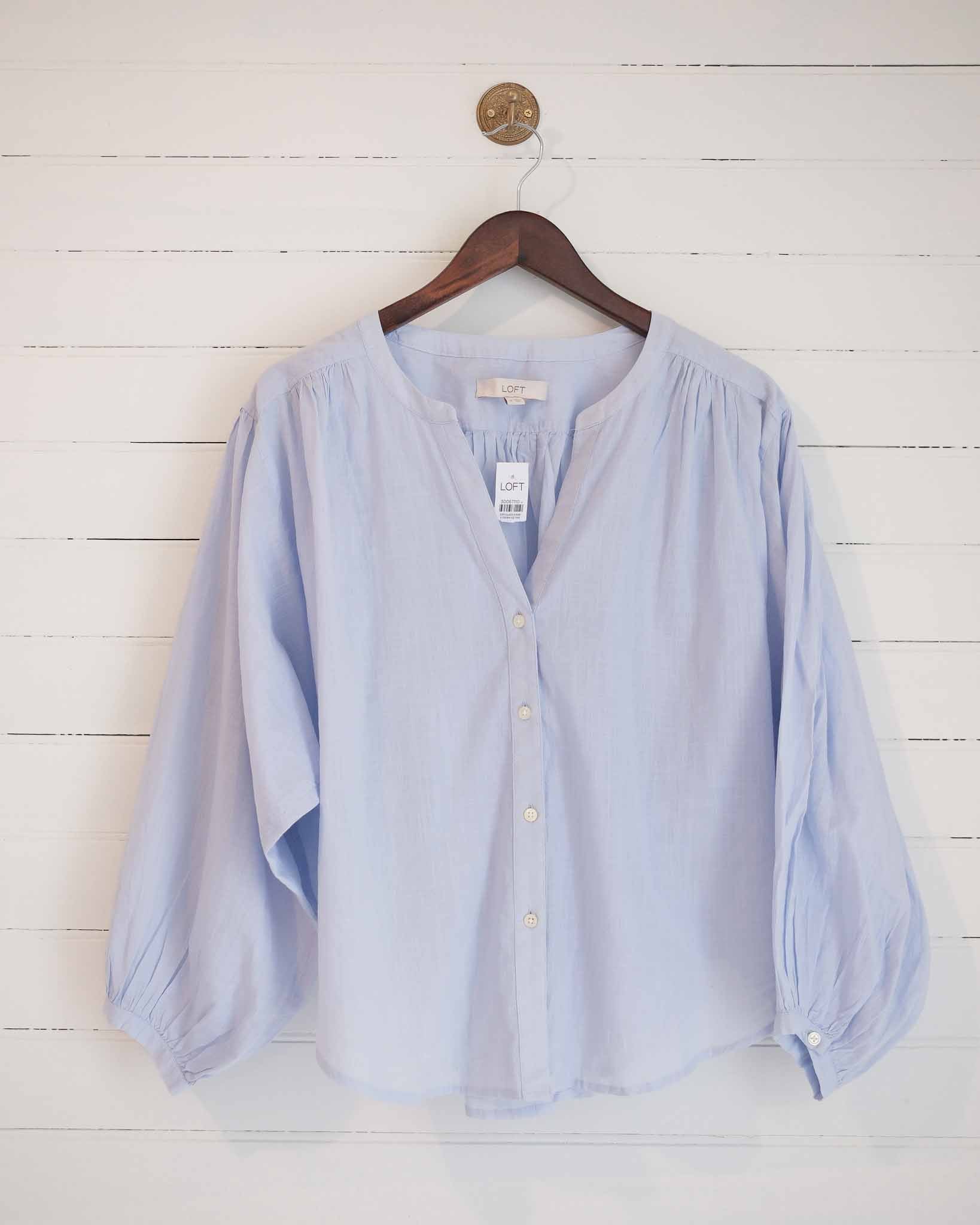 Loft blue button down blouse with the perfect sleeves! 100% cotton. New with tags!
