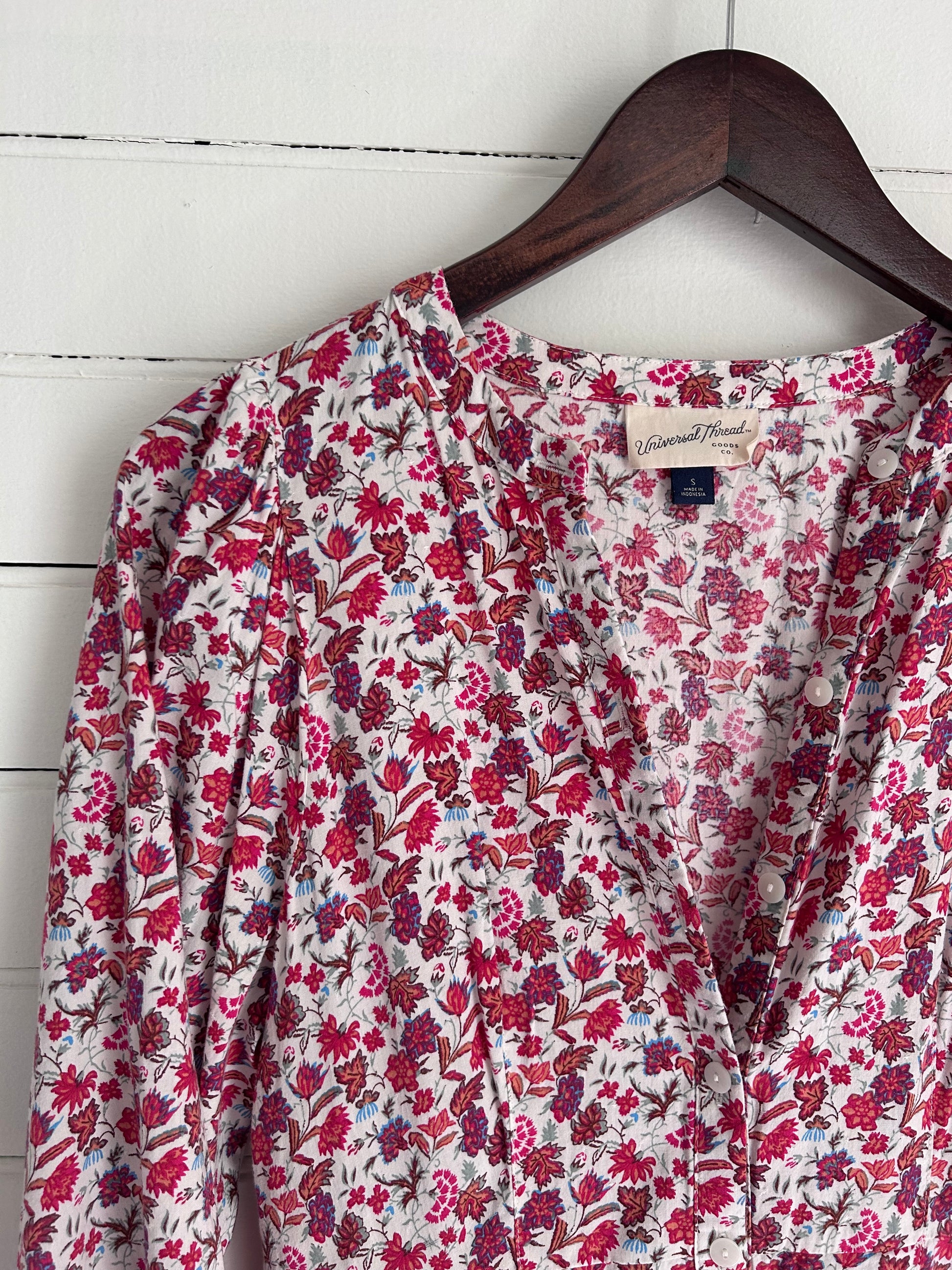 Universal Threads pink floral dress. Long sleeves and buttons running down the center.