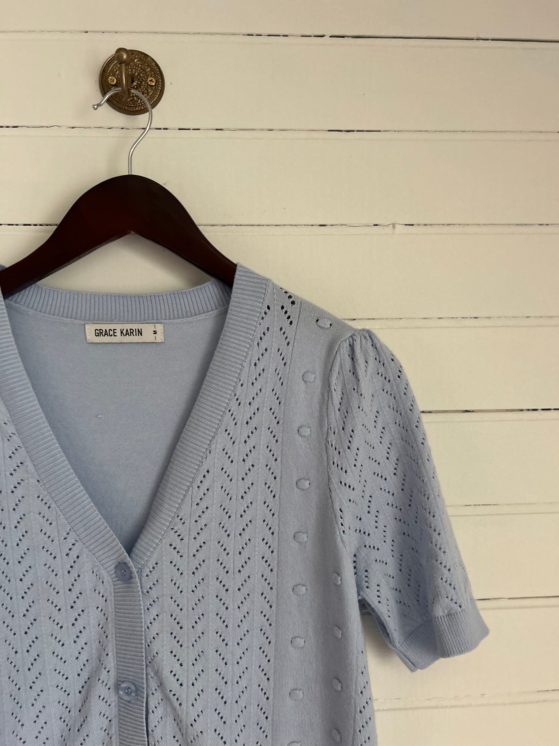 Medium Blue Short-sleeve Cardigan